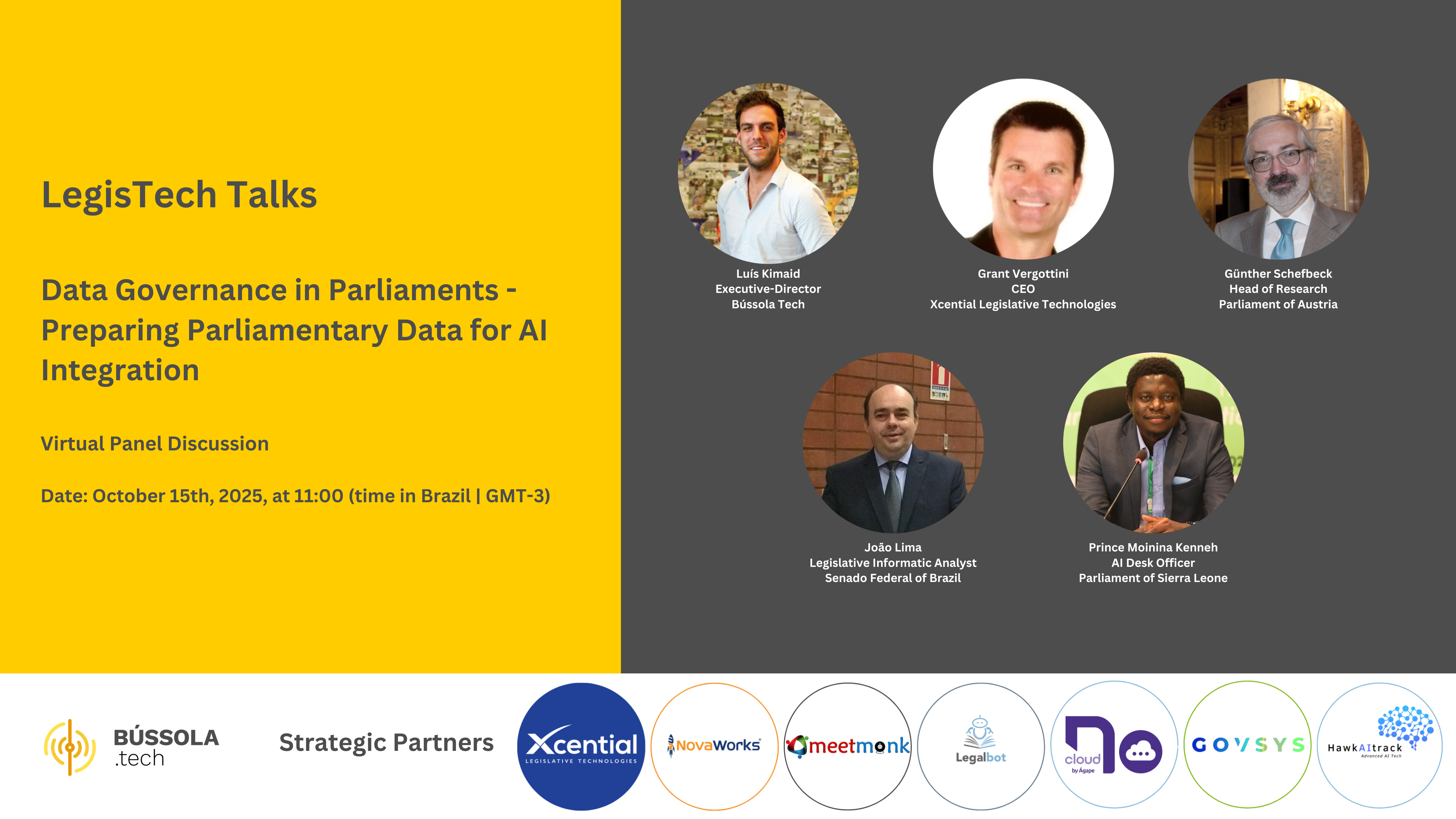 Bússola Tech is proud to host a high-level panel discussion exploring how data governance can shape the future of artificial intelligence in legislative institutions. Titled “Data Governance in Parliaments – Preparing Parliamentary Data for AI Integration,” this session will focus on the principles, standards, and capacities needed to ensure that parliamentary data ecosystems are ready to support responsible and effective AI adoption.